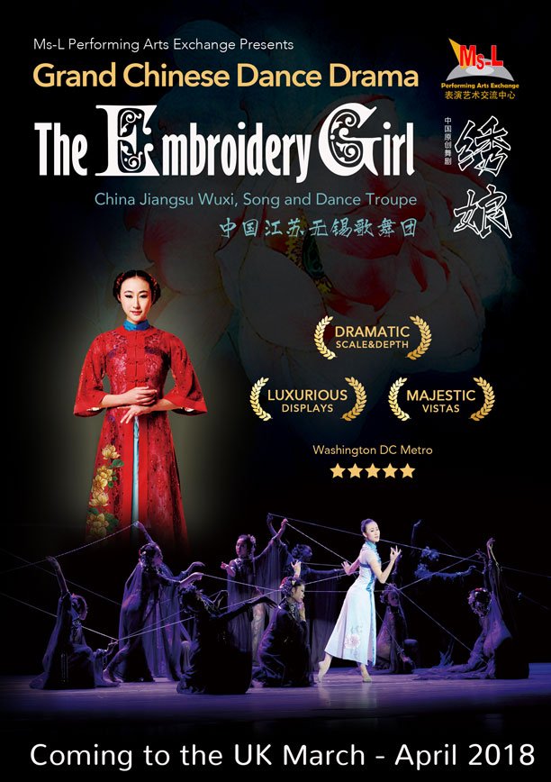 The Embroidery Girl is a large scale dance drama produced by Chinese State Theatre’s: Jiangsu Wuxi, Song and Dance Troupe.